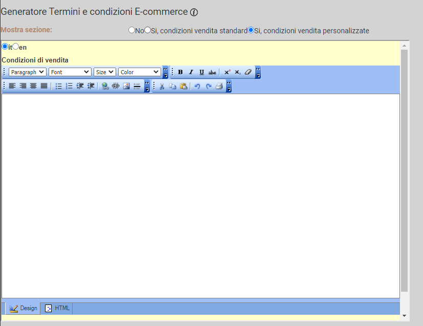 E' possibile indicare condizioni di vendita personalizzate selezionando l'opzione relativa e inserendo il testo nella casella.