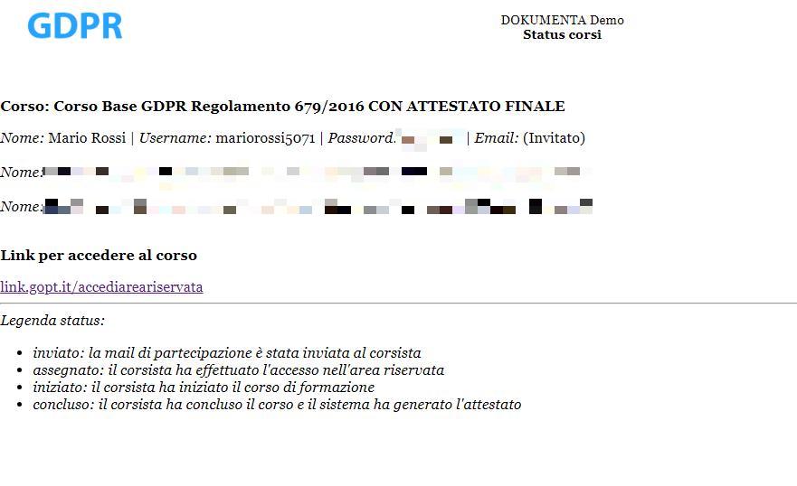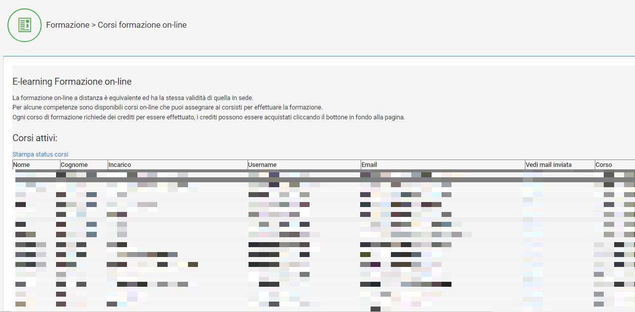 Sarà mostrato un elenco come questo con tutte le credenziali associate ad ogni corsista
