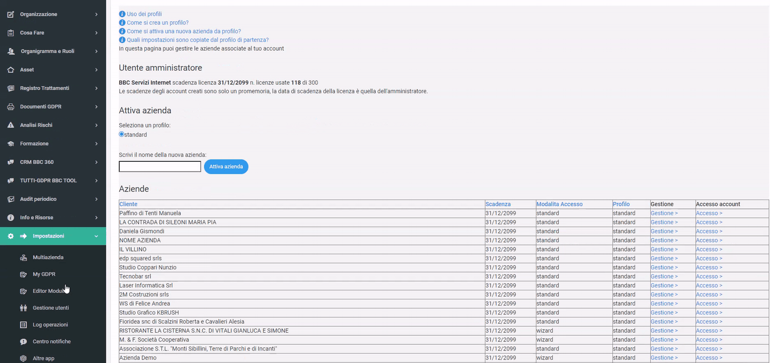 Sono un consulente Privacy, come funziona la versione Multiazienda?